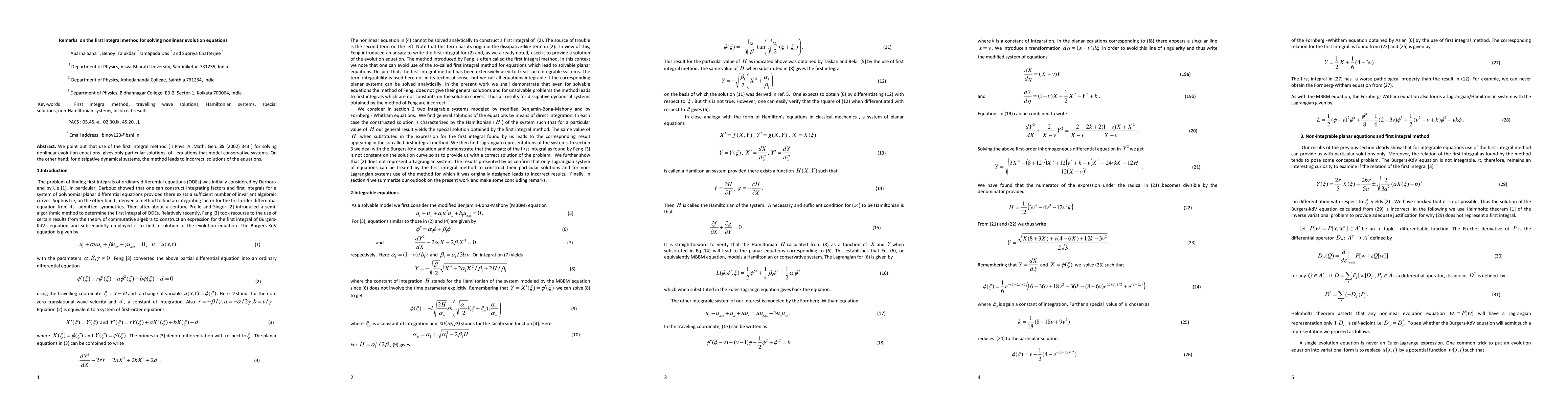 The first integral method only yields correct solutions for conservative systems, while failing to provide accurate results for dissipative systems.