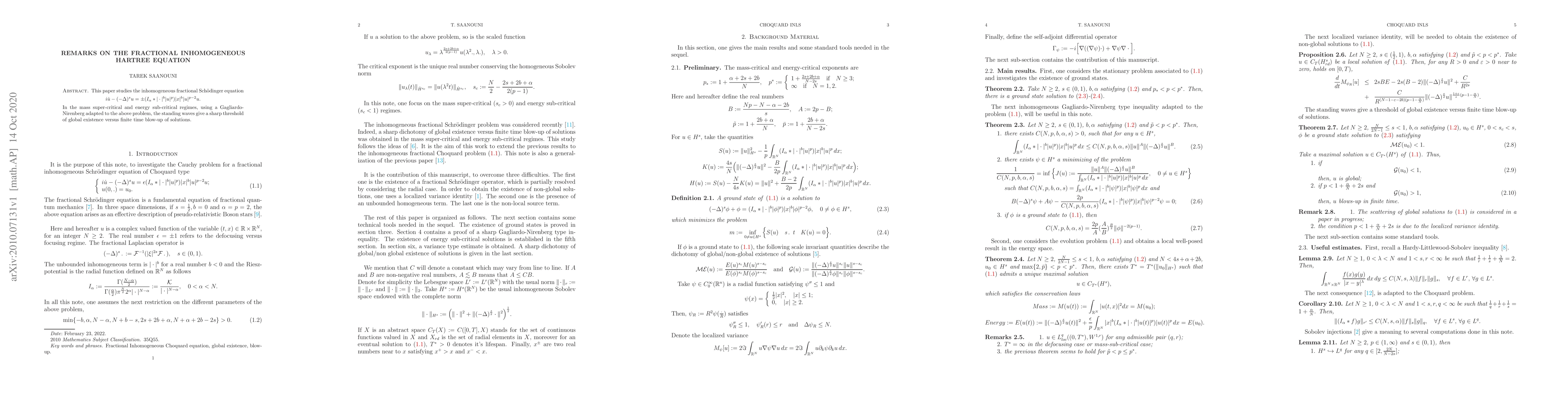 This paper studies the inhomogeneous fractional Sch\"odinger equation $$i\dot u-(-\Delta)^s u=\pm(I_\alpha *|\cdot|^b|u|^p)|x|^b|u|^{p-2}u.$$ In the mass super-critical and energy sub-critical regimes, using a Gagliardo-Nirenberg adapted to the above problem, the standing waves give a sharp threshold of global existence versus finite time blow-up of solutions.