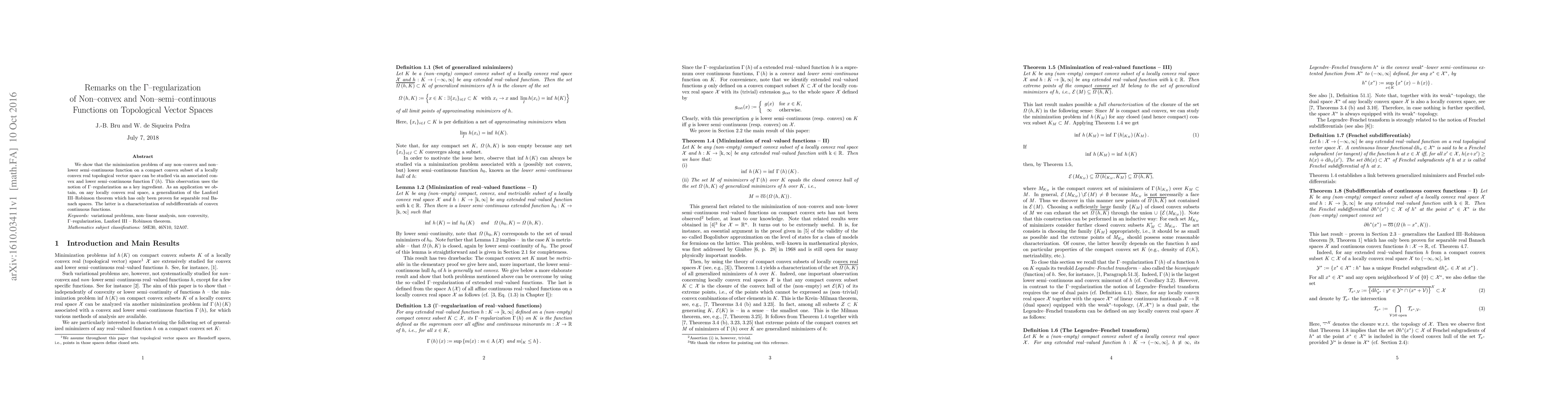 We show that the minimization problem of any non-convex and non-lower semi-continuous function on a compact convex subset of a locally convex real topological vector space can be studied via an associated convex and lower semi-continuous function $\Gamma \left( h\right) $. This observation uses the notion of $\Gamma $-regularization as a key ingredient. As an application we obtain, on any locally convex real space, a generalization of the Lanford III-Robinson theorem which has only been proven for separable real Banach spaces. The latter is a characterization of subdifferentials of convex continuous functions.
