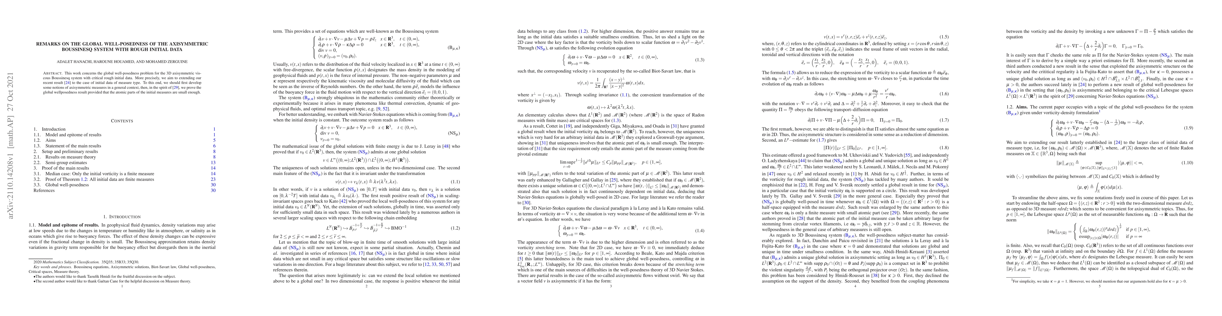 This paper investigates the global well-posedness of the 3D axisymmetric viscous Boussinesq system with critical rough initial data, specifically extending previous results to initial data of measure type. The authors develop notions of axisymmetric measures and prove global well-posedness when the atomic parts of the initial measures are sufficiently small.