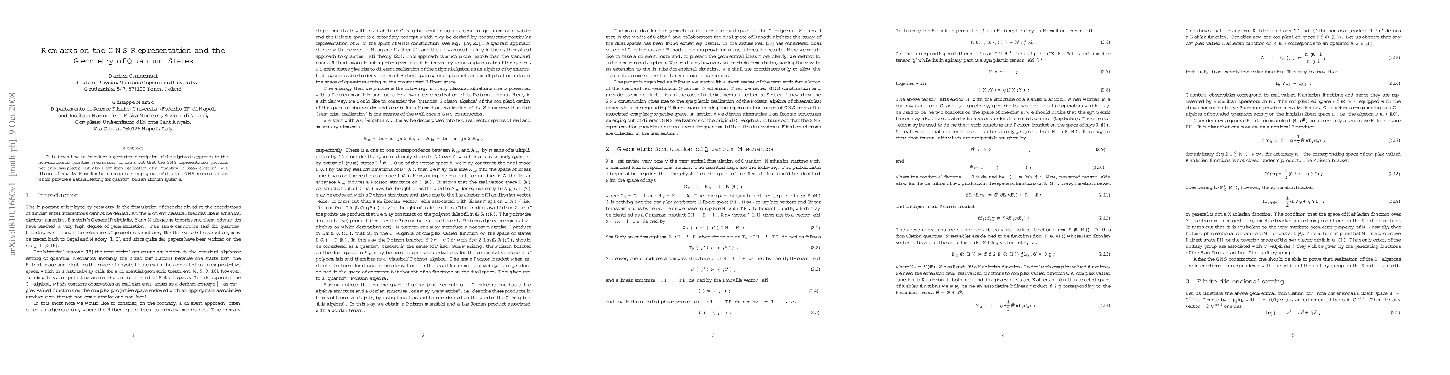 It is shown how to introduce a geometric description of the algebraic approach to the non-relativistic quantum mechanics. It turns out that the GNS representation provides not only symplectic but also Hermitian realization of a `quantum Poisson algebra'. We discuss alternative Hamiltonian structures emerging out of different GNS representations which provide a natural setting for quantum bi-Hamiltonian systems.
