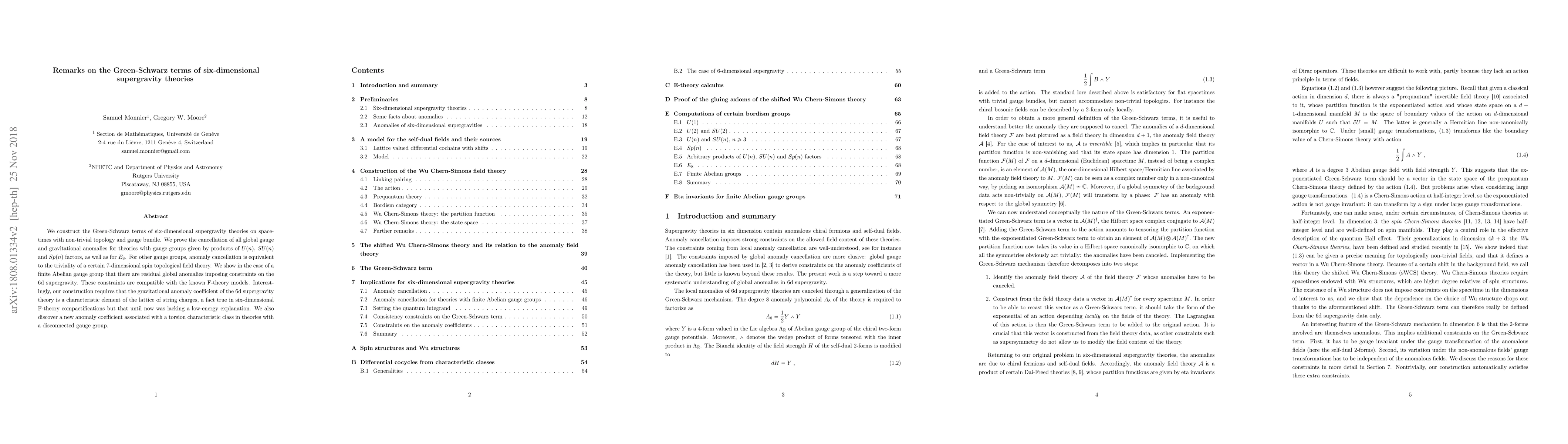 This paper constructs Green-Schwarz terms for six-dimensional supergravity on non-trivial topologies, proving anomaly cancellation for specific gauge groups and revealing new constraints on 6d supergravity theories. It also identifies a new anomaly coefficient linked to torsion characteristic classes in disconnected gauge groups.
