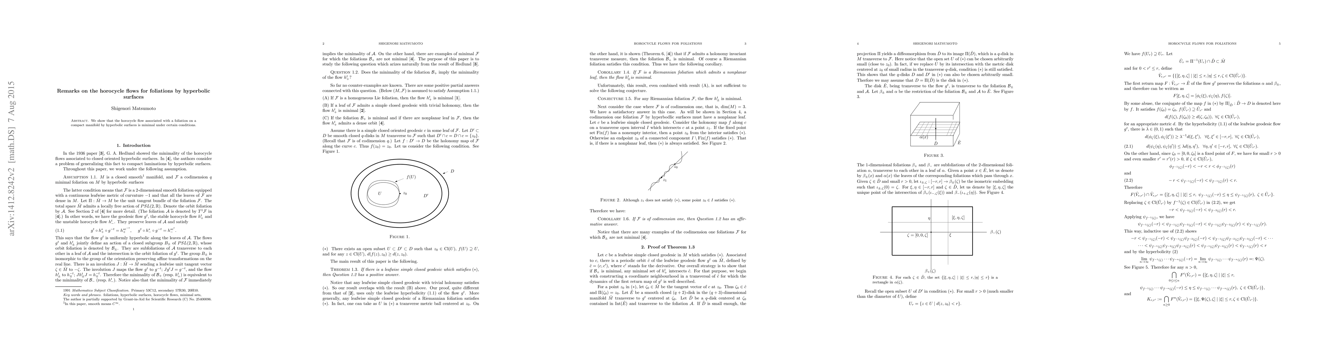The paper demonstrates that the horocycle flow for foliations by hyperbolic surfaces on a compact manifold is minimal when specific conditions are met. This result enhances understanding of dynamical systems on foliated manifolds.