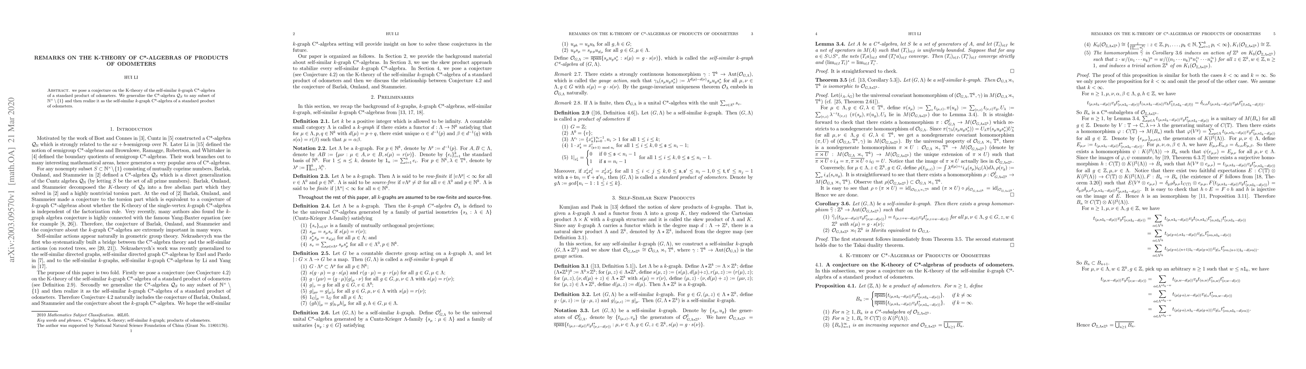 Researchers propose a conjecture on the K-theory of C*-algebras generated from products of odometers, proposing a new self-similar k-graph algebra.