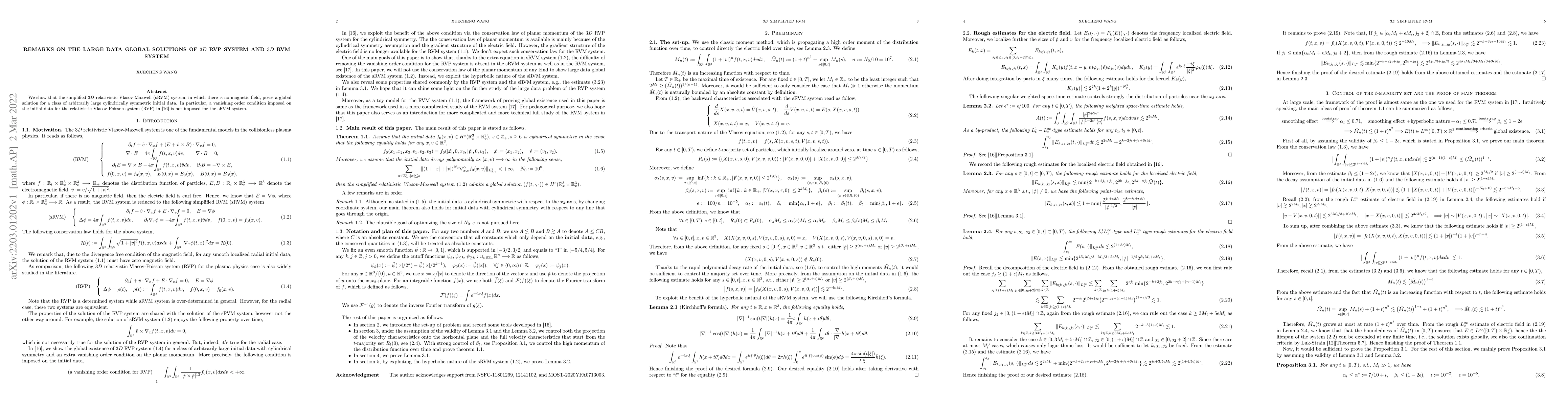 The research paper shows that a simplified 3D relativistic Vlasov-Maxwell system can have global solutions for arbitrarily large cylindrically symmetric initial data without the vanishing order condition imposed on the original system.