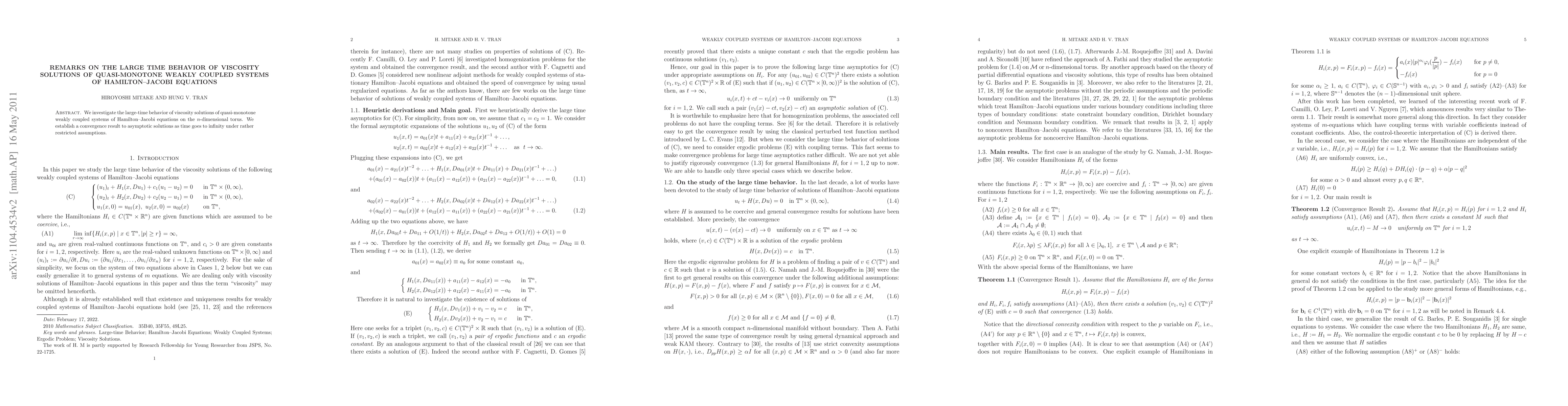 This paper examines the long-term behavior of viscosity solutions for quasi-monotone, weakly coupled systems of Hamilton-Jacobi equations on an $n$-dimensional torus, proving convergence to asymptotic solutions under minimal assumptions.