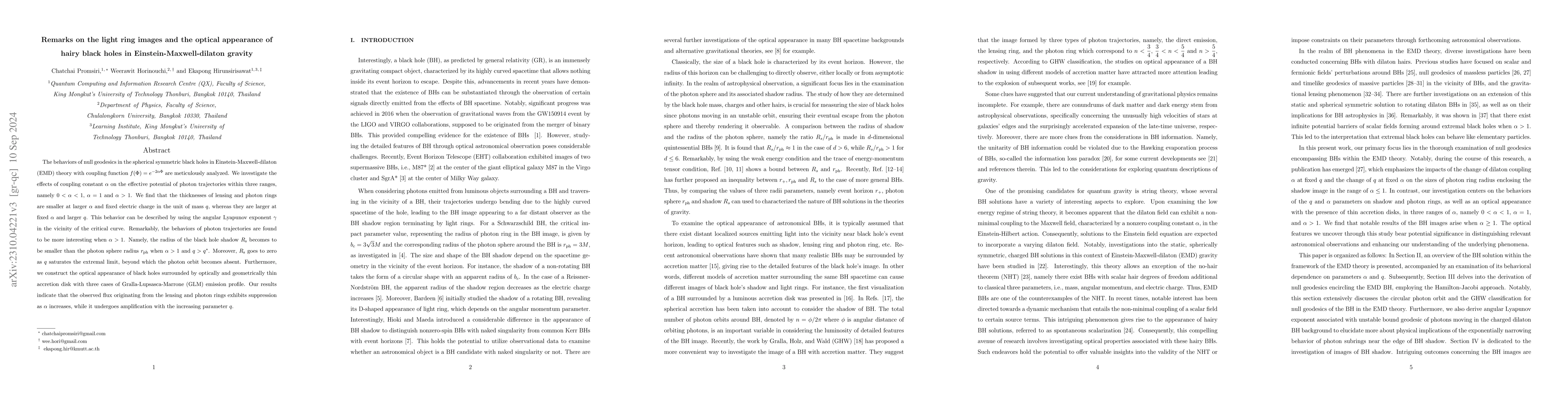 This paper analyzes the null geodesics in Einstein-Maxwell-dilaton black holes, finding that larger coupling constants $\alpha$ reduce the thicknesses of lensing and photon rings. Notably, when $\alpha > 1$, the black hole shadow becomes smaller than the photon sphere radius, and the shadow vanishes at extremal limits, leading to absent photon orbits. The study also examines the optical appearance of these black holes, revealing that the observed flux from lensing and photon rings decreases with increasing $\alpha$ but increases with higher electric charge $q$.