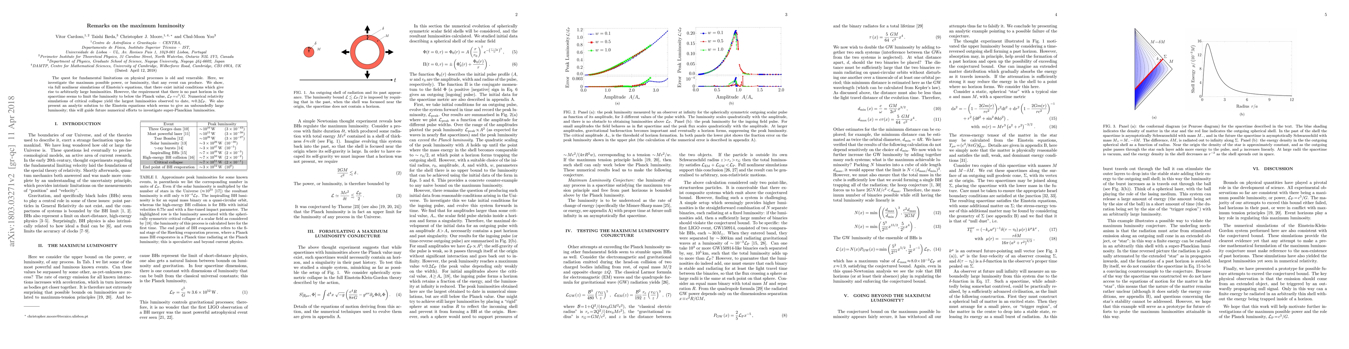 The quest for fundamental limitations on physical processes is old and venerable. Here, we investigate the maximum possible power, or luminosity, that any event can produce. We show, via full nonlinear simulations of Einstein's equations, that there exist initial conditions which give rise to arbitrarily large luminosities. However, the requirement that there is no past horizon in the spacetime seems to limit the luminosity to below the Planck value, ${{\cal L}_\textrm{P}\!=\!c^5/G}$. Numerical relativity simulations of critical collapse yield the largest luminosities observed to date, ${\approx \! 0.2 {\cal L}_\textrm{P}}$. We also present an analytic solution to the Einstein equations which seems to give an unboundedly large luminosity; this will guide future numerical efforts to investigate super-Planckian luminosities.