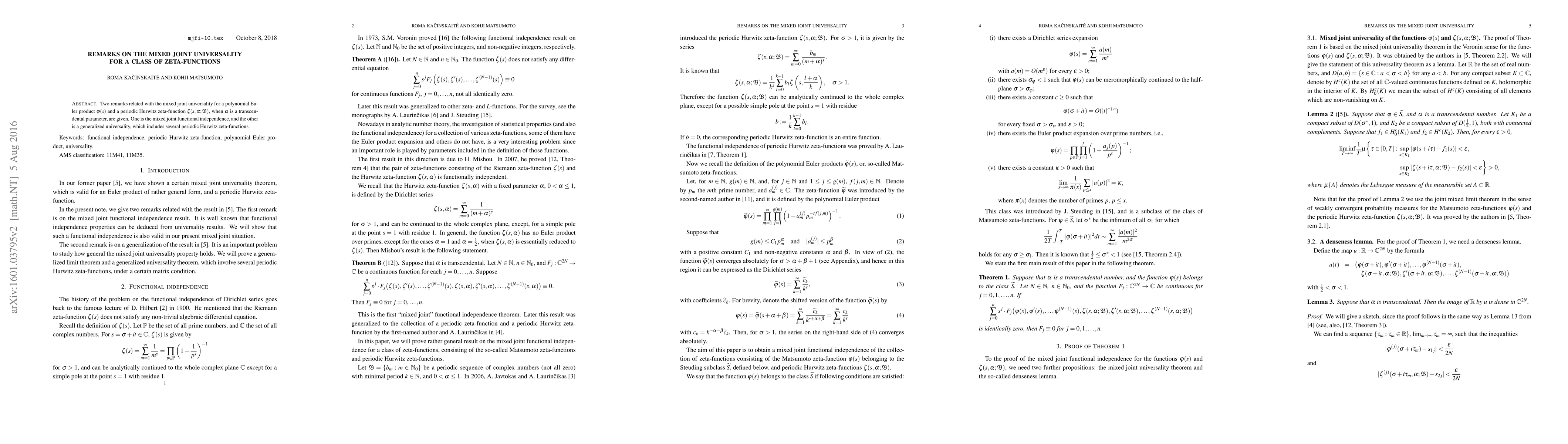 Two remarks related with the mixed joint universality for a polynomial Euler product and a periodic Hurwitz zeta-function with a transcendental parameter are given. One is the mixed joint functional independence, and the other is a generalized universality, which includes several periodic Hurwitz zeta-functions.