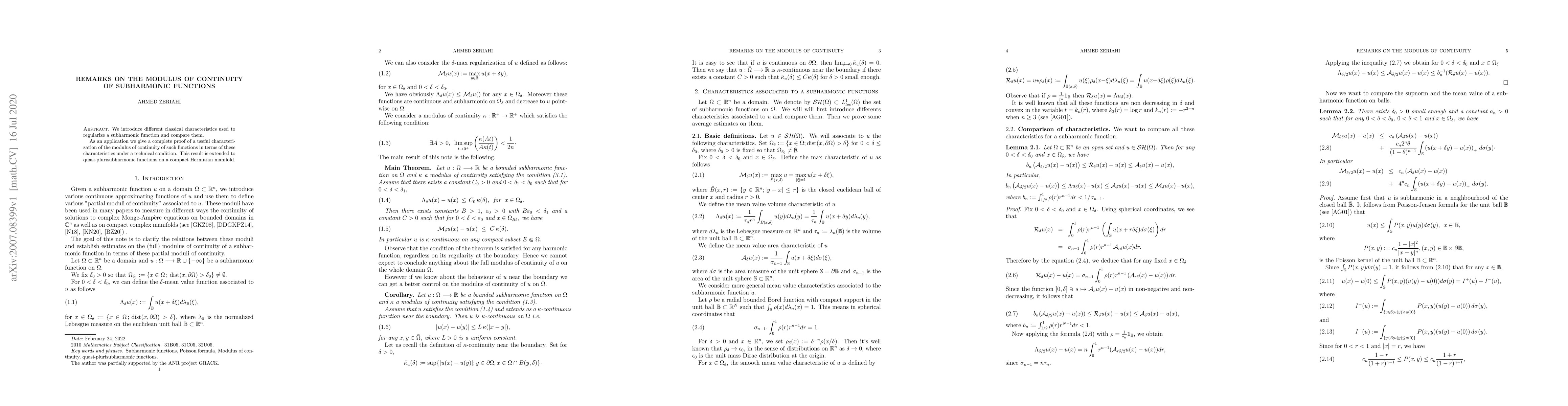 We introduce different classical characteristics used to regularize a subharmonic function and compare them. As an application we give a complete proof of a useful characterization of the modulus of continuity of such functions in terms of these characteristics under a technical condition. This result is extended to quasi-plurisubharmonic functions on a compact Hermitian manifold.