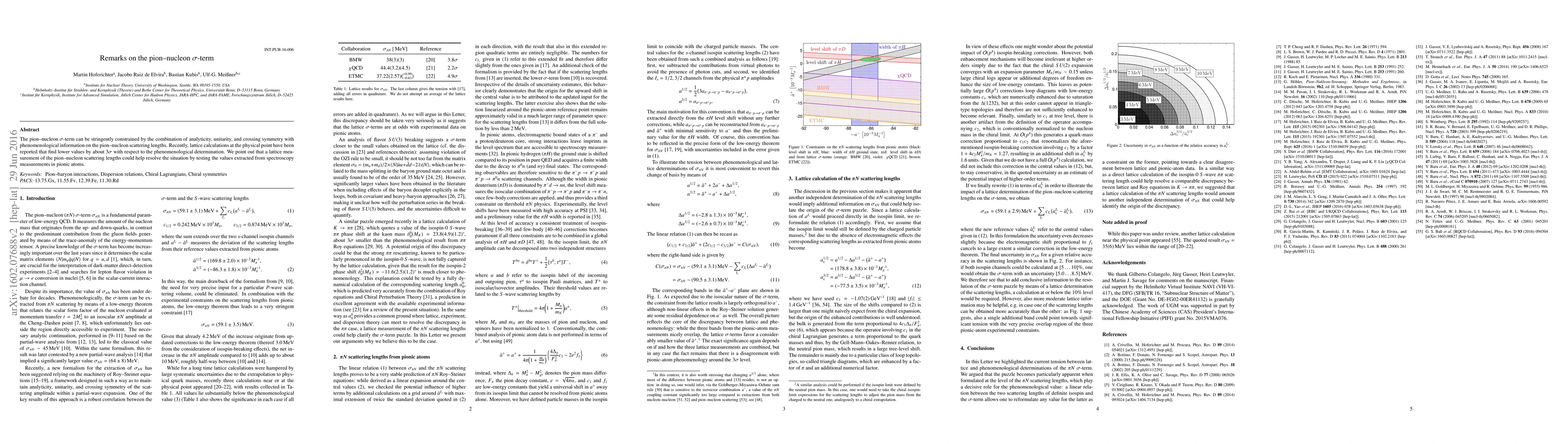 This paper discusses the pion-nucleon $\sigma$-term, emphasizing its constraints from analyticity, unitarity, and crossing symmetry, and highlights a discrepancy between lattice calculations and phenomenological values. It suggests that lattice measurements of pion-nucleon scattering lengths could resolve this discrepancy.
