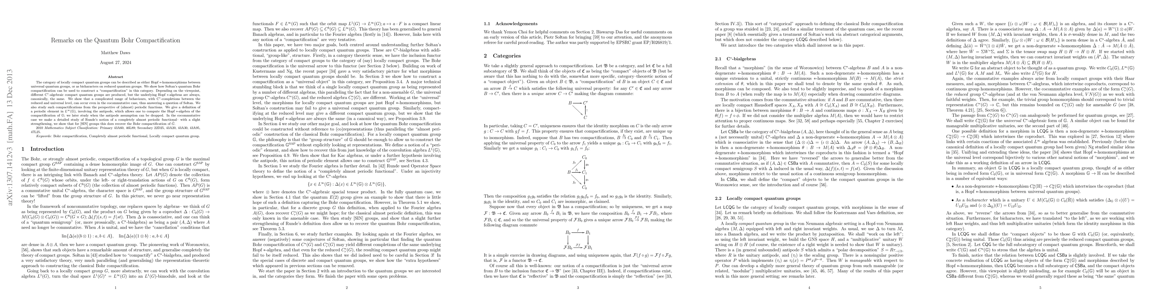 This paper explores the construction of a "compactification" in the category of locally compact quantum groups using Sołtan's quantum Bohr compactification, revealing diverse C$^*$-algebraic compact quantum groups while maintaining the same underlying Hopf $*$-algebras. It also investigates periodic elements in $L^\infty(\mathbb G)$ and the relationship between completely almost periodic functionals and the Bohr compactification for cocommutative groups.