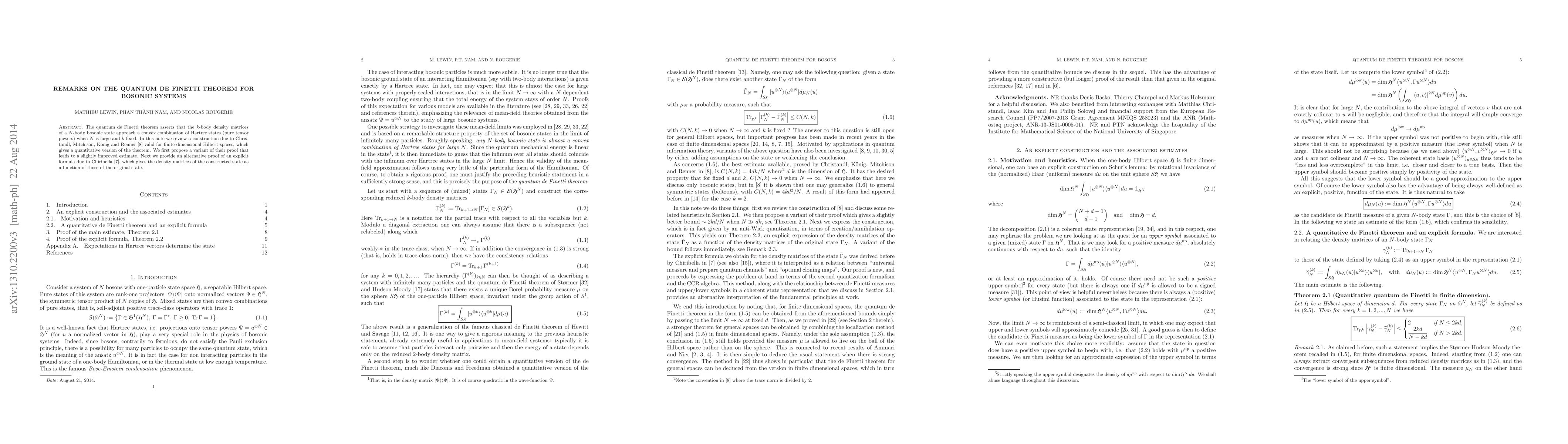 This paper reviews a quantitative version of the quantum de Finetti theorem for bosonic systems, proposing a slightly improved estimate and providing an alternative proof for an explicit formula. The focus is on the construction of k-body density matrices approaching Hartree states as the system size N grows large.