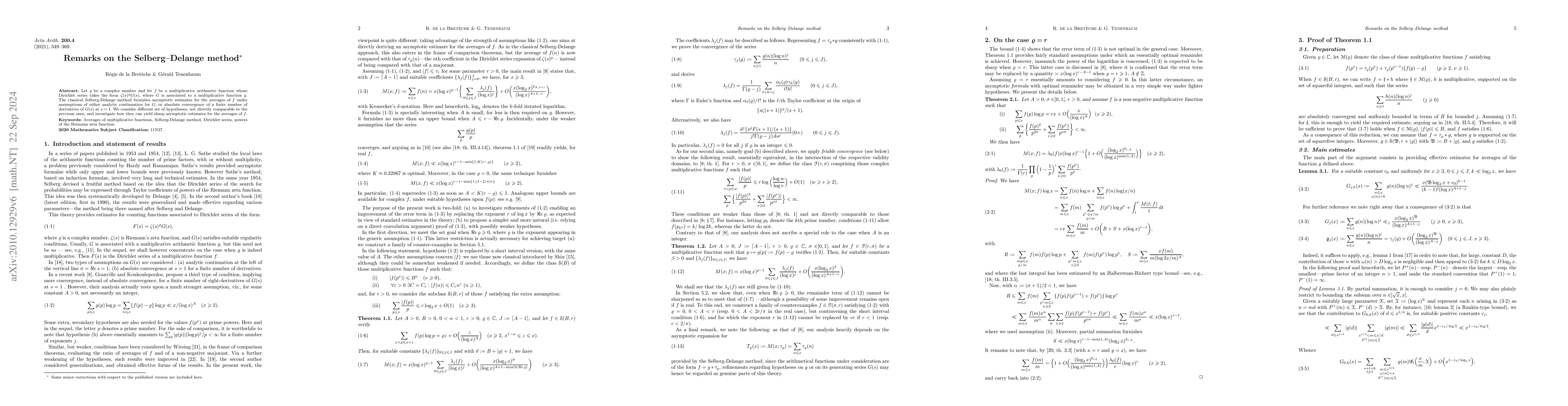 The paper revisits the Selberg-Delange method for estimating averages of a multiplicative function f, considering different hypotheses that may lead to sharp asymptotic estimates, expanding on existing methods with new insights.