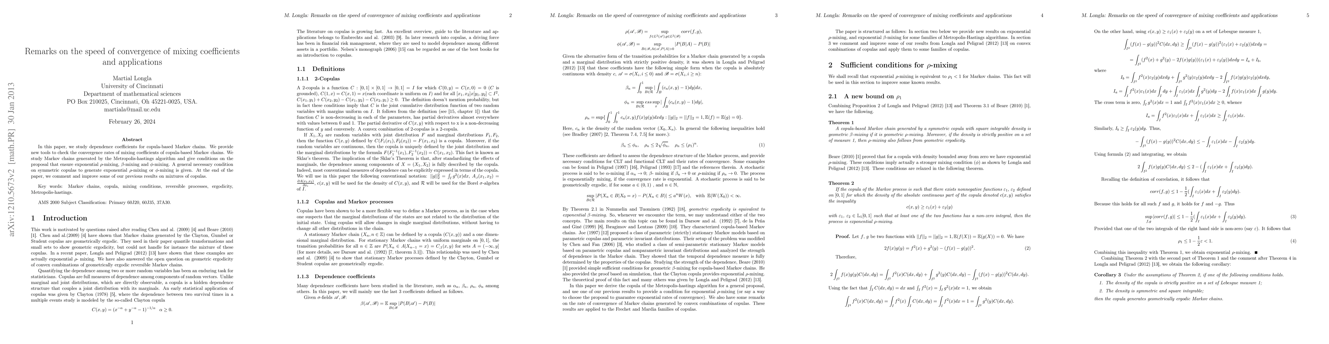 In this paper, we study dependence coefficients for copula-based Markov chains. We provide new tools to check the convergence rates of mixing coefficients of copula-based Markov chains. We study Markov chains generated by the Metropolis-hastings algorithm and give conditions on the proposal that ensure exponential $\rho$-mixing, $\beta$-mixing and $\phi$-mixing. A general necessary condition on symmetric copulas to generate exponential $\rho$-mixing or $\phi$-mixing is given. At the end of the paper, we comment and improve some of our previous results on mixtures of copulas.