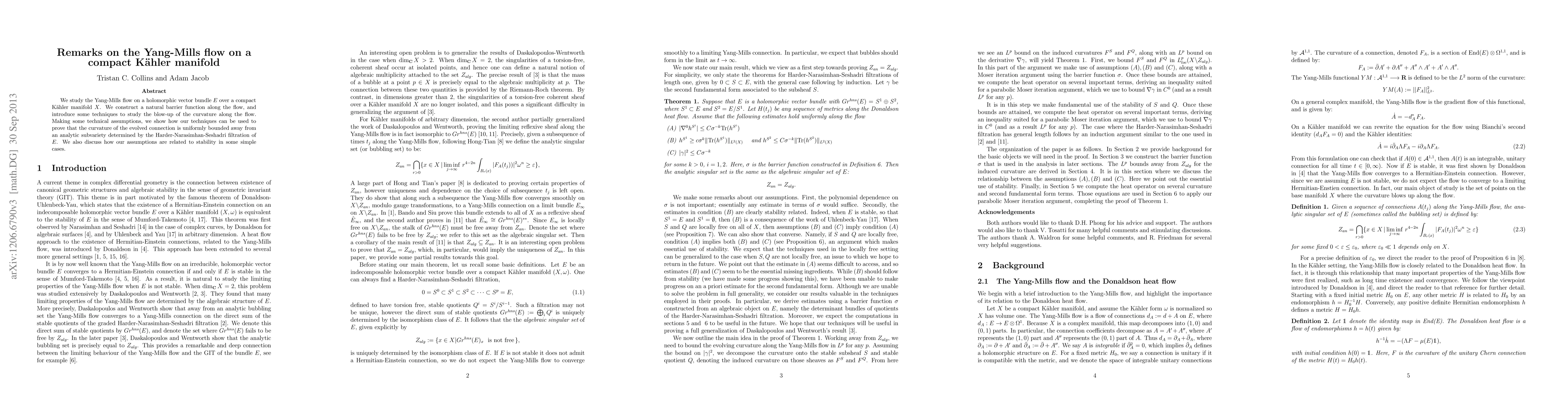 We study the Yang-Mills flow on a holomorphic vector bundle E over a compact Kahler manifold X. We construct a natural barrier function along the flow, and introduce some techniques to study the blow-up of the curvature along the flow. Making some technical assumptions, we show how our techniques can be used to prove that the curvature of the evolved connection is uniformly bounded away from an analytic subvariety determined by the Harder-Narasimhan-Seshadri filtration of E. We also discuss how our assumptions are related to stability in some simple cases.