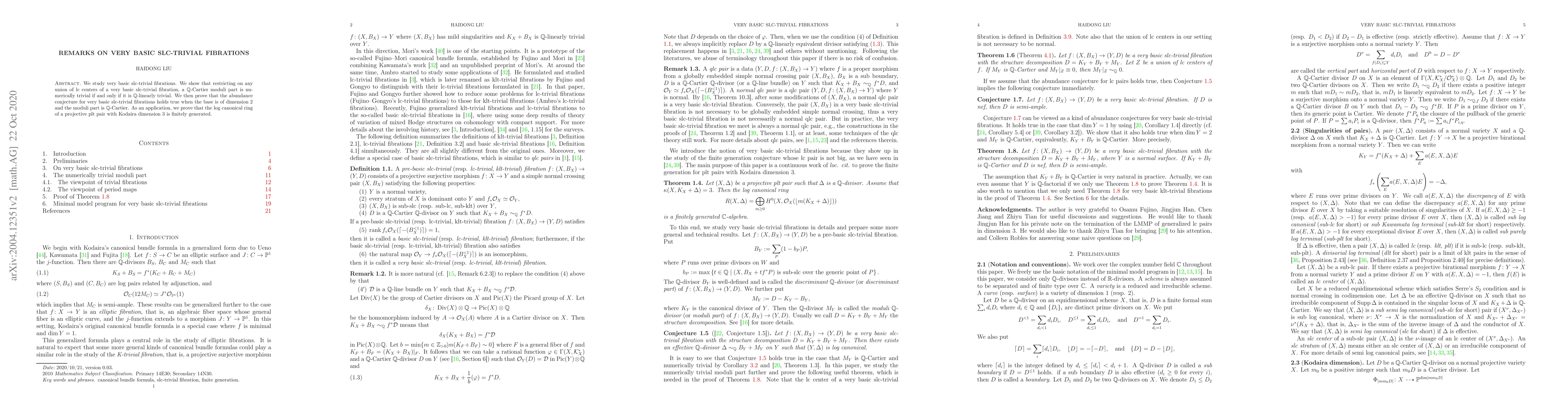 This paper examines very basic slc-trivial fibrations, proving that the moduli part is numerically trivial if it is $\mathbb Q$-linearly trivial on any lc center. It verifies the abundance conjecture for these fibrations in dimension two when the moduli part is $\mathbb Q$-Cartier, and demonstrates that the log canonical ring of a projective plt pair with Kodaira dimension 3 is finitely generated.