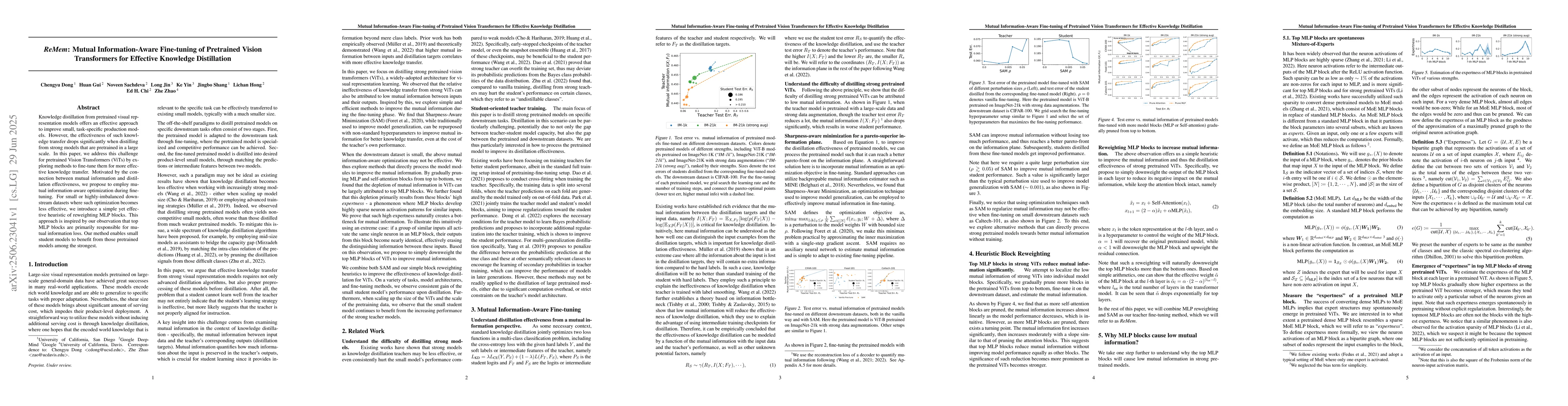 This paper introduces ReMem, a method to enhance knowledge distillation from strong pretrained Vision Transformers (ViTs) for smaller task-specific models. ReMem employs mutual information-aware optimization during fine-tuning and introduces a heuristic of reweighting MLP blocks for datasets with limited data. This allows smaller models to effectively leverage knowledge from powerful pretrained models.