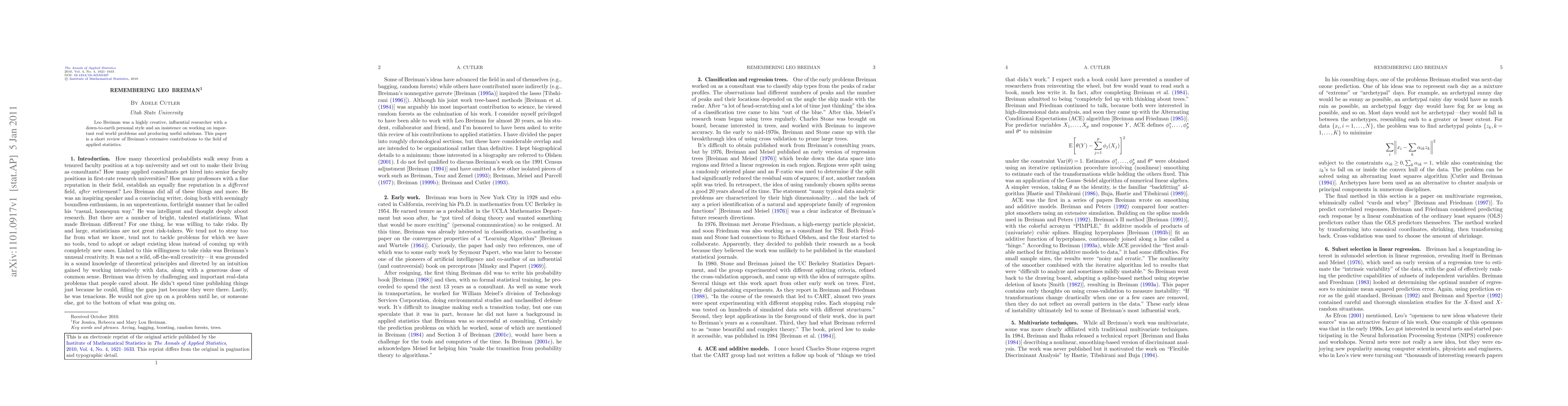 This paper reviews Leo Breiman's contributions to applied statistics, highlighting his focus on real-world problems and practical solutions. It celebrates his influential research legacy.