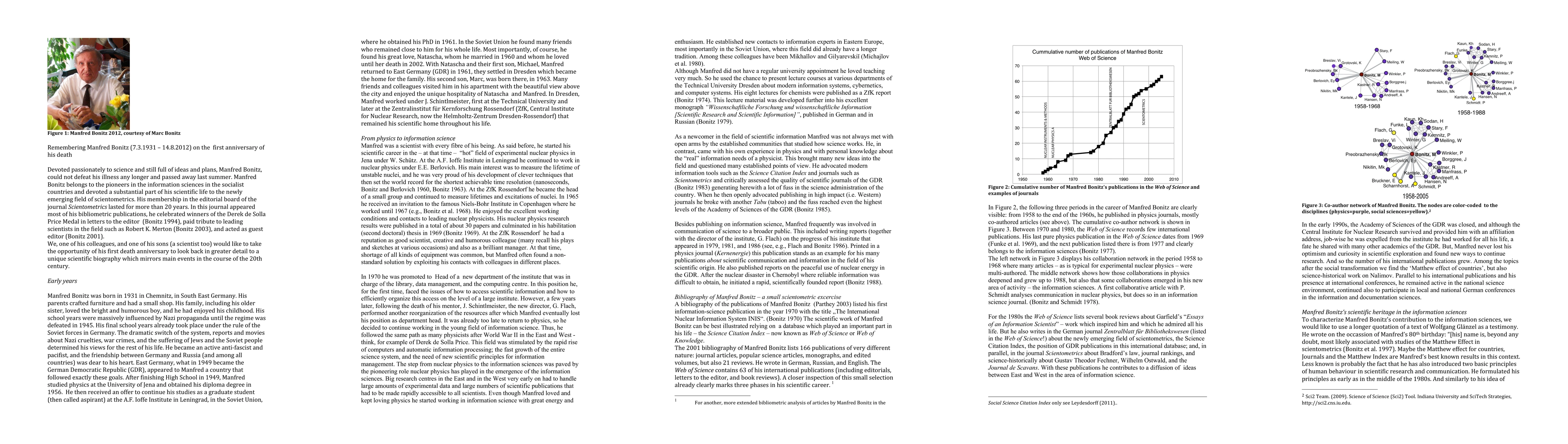Biographical essay at the occasion of the first death anniversary of Manfred Bonitz