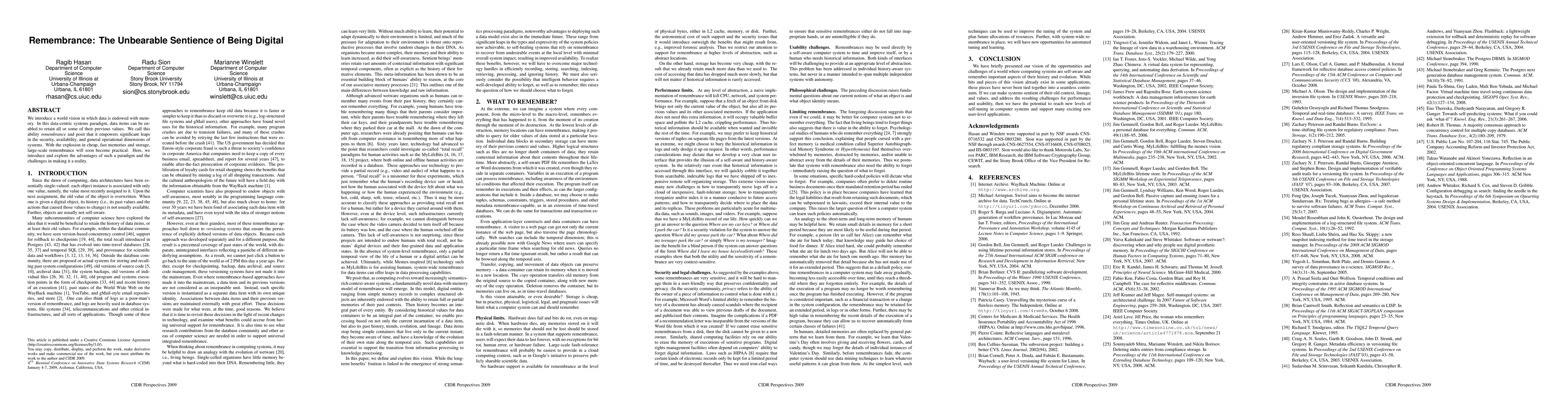 The paper presents a vision for data-centric systems with 'remembrance', enabling data items to retain previous values, leveraging advancements in cheap, fast memories and storage.