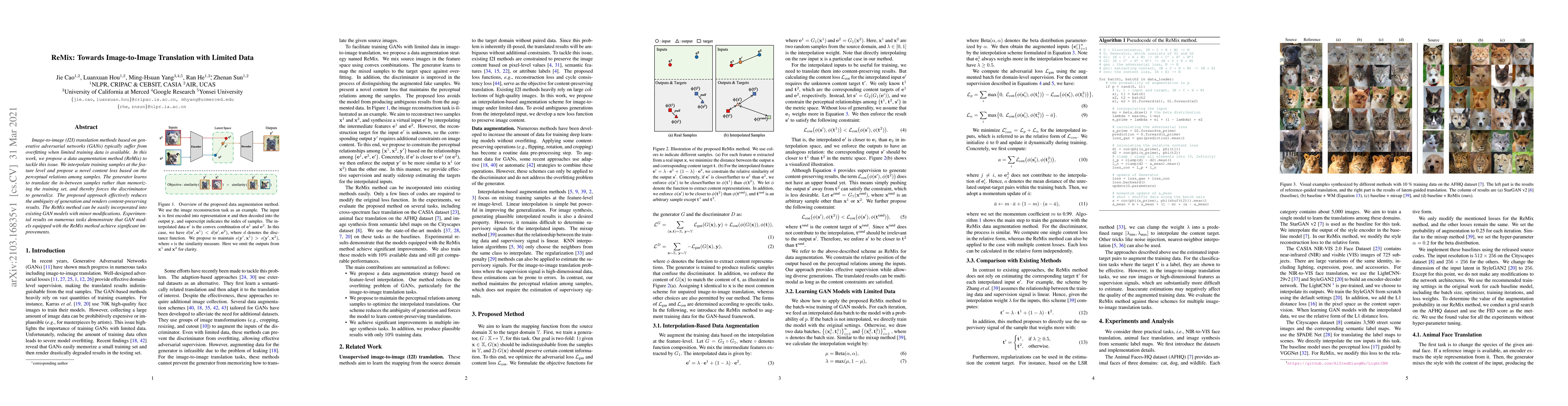 Researchers propose ReMix, a method to improve image-to-image translation with limited data using feature-level interpolation and perceptual loss, leading to significant improvements in GAN models.
