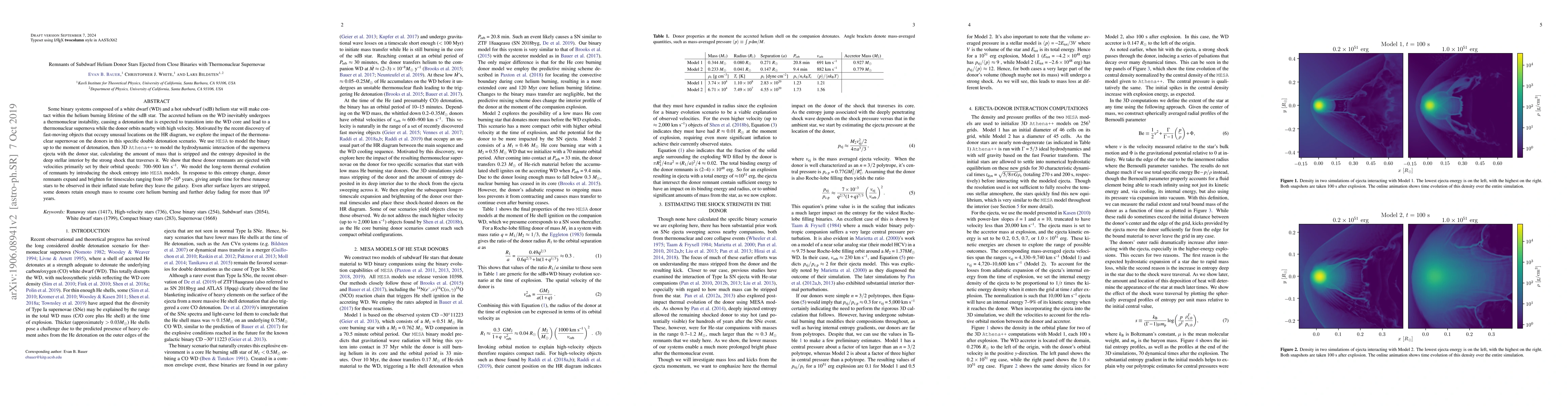 This paper investigates the remnants of subdwarf helium donor stars ejected from close binary systems following thermonuclear supernovae. It models the hydrodynamic interaction between the supernova ejecta and the donor star, revealing that donor remnants are ejected at velocities of $700-900\ \rm km\ s^{-1}$ and may expand and brighten for $10^6-10^8$ years due to shock-induced entropy changes, potentially allowing observation before they leave the galaxy.