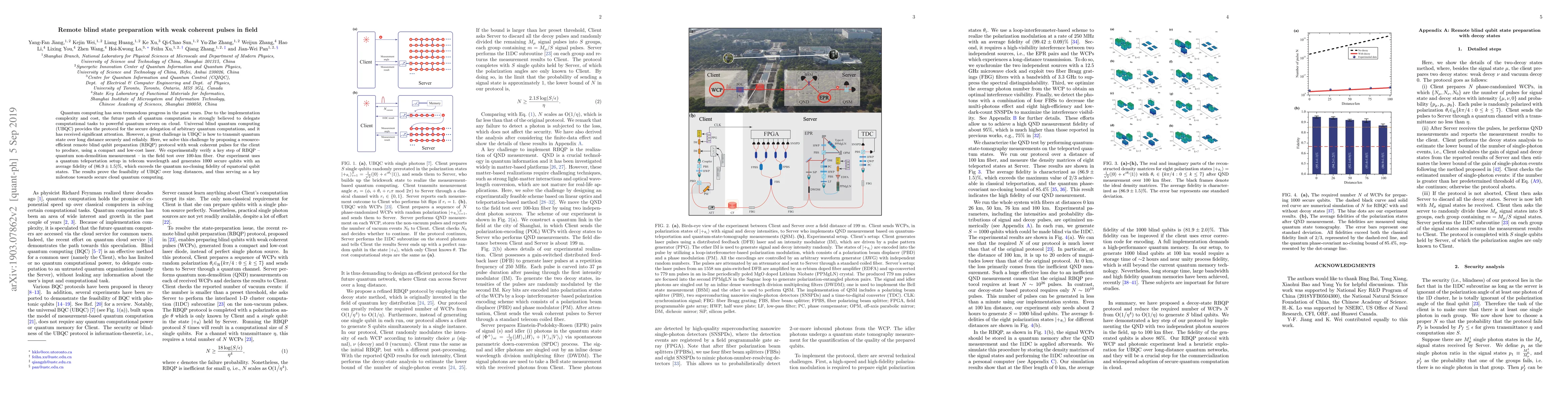 Quantum computing has seen tremendous progress in the past years. Due to the implementation complexity and cost, the future path of quantum computation is strongly believed to delegate computational tasks to powerful quantum servers on cloud. Universal blind quantum computing (UBQC) provides the protocol for the secure delegation of arbitrary quantum computations, and it has received significant attention. However, a great challenge in UBQC is how to transmit quantum state over long distance securely and reliably. Here, we solve this challenge by proposing and demonstrating a resource-efficient remote blind qubit preparation (RBQP) protocol with weak coherent pulses for the client to produce, using a compact and low-cost laser. We demonstrate the protocol in field, experimentally verifying the protocol over 100-km fiber. Our experiment uses a quantum teleportation setup in telecom wavelength and generates $1000$ secure qubits with an average fidelity of $(86.9\pm1.5)\%$, which exceeds the quantum no-cloning fidelity of equatorial qubit states. The results prove the feasibility of UBQC over long distances, and thus serving as a key milestone towards secure cloud quantum computing.