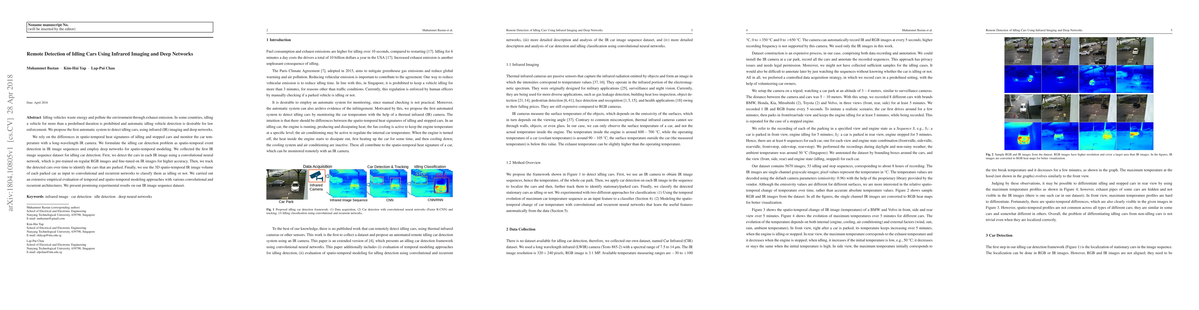 This paper proposes an automatic system using infrared imaging and deep networks to detect idling cars based on their unique spatio-temporal heat signatures. The system employs convolutional and recurrent neural networks to classify parked cars as idling or not, achieving promising results in empirical evaluations.