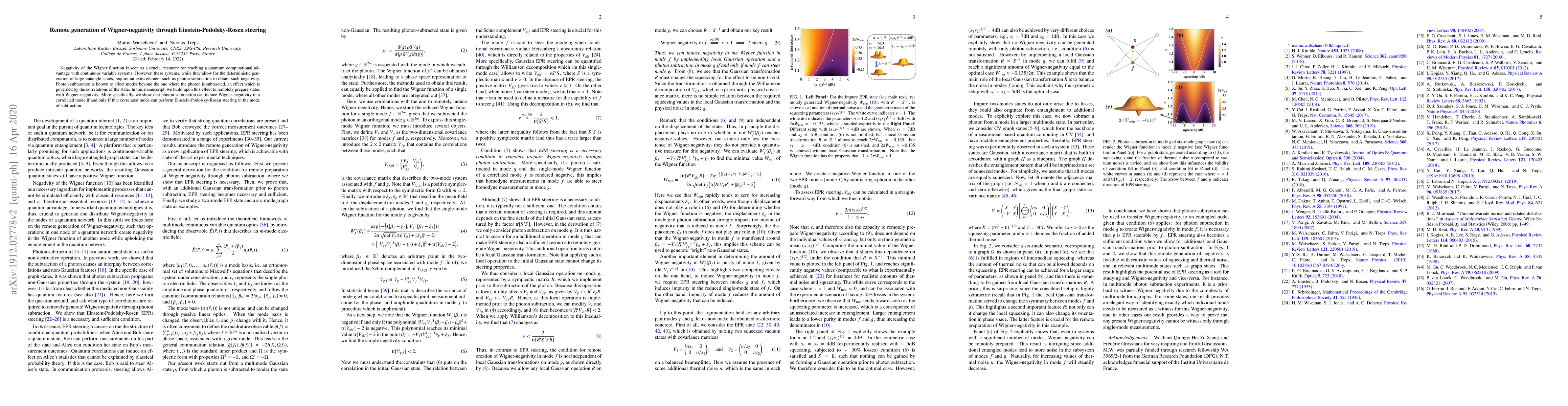 This paper demonstrates a method to remotely generate Wigner-negativity in quantum systems using Einstein-Podolsky-Rosen steering, showing that photon subtraction can induce negativity in correlated modes if they exhibit steering in the subtraction mode. This technique bypasses the need for direct photon subtraction, simplifying quantum state preparation.