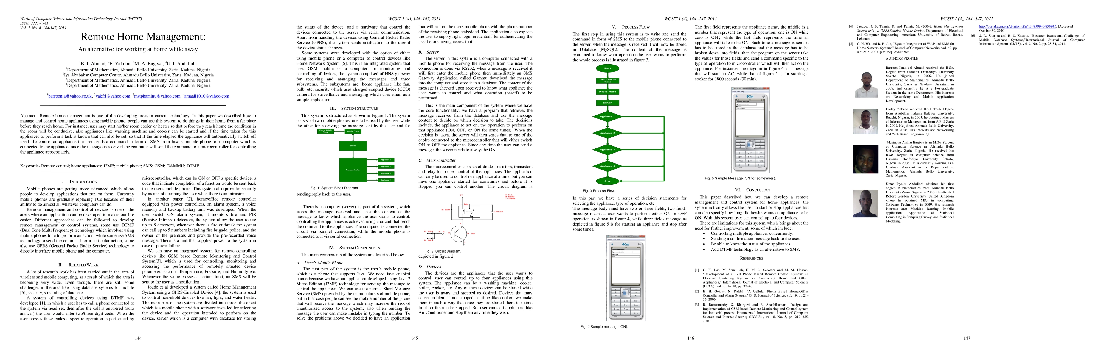 This paper explores a remote home management system enabling users to control home appliances via mobile phone SMS, allowing pre-conditioning of rooms and automated operation of devices like coolers, heaters, washing machines, and cookers before their arrival. The system involves a computer connected to a microcontroller to execute commands sent from a mobile phone.