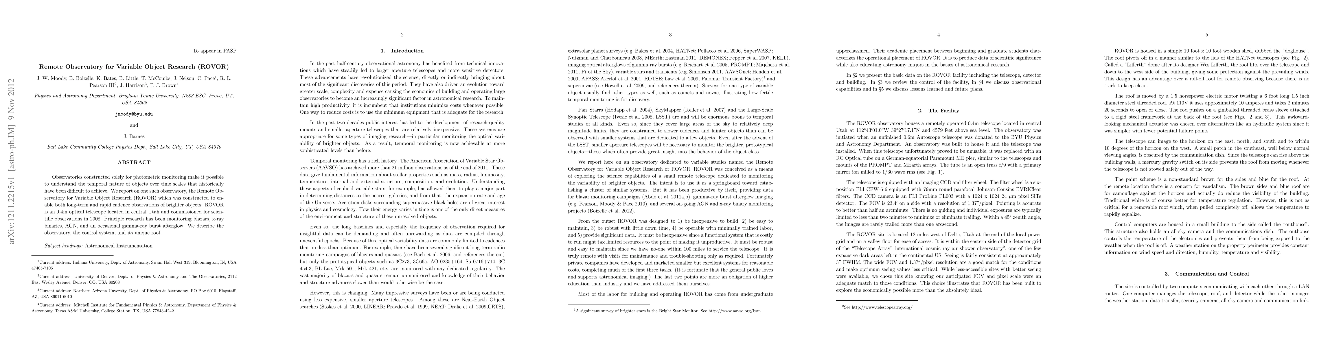 Observatories constructed solely for photometric monitoring make it possible to understand the temporal nature of objects over time scales that historically have been difficult to achieve. We report on one such observatory, the Remote Observatory for Variable Object Research (ROVOR) which was constructed to enable both long-term and rapid cadence observations of brighter objects. ROVOR is an 0.4m optical telescope located in central Utah and commissioned for scientific observations in 2008. Principle research has been monitoring blazars, x-ray binaries, AGN, and an occasional gamma-ray burst afterglow. We describe the observatory, the control system, and its unique roof.