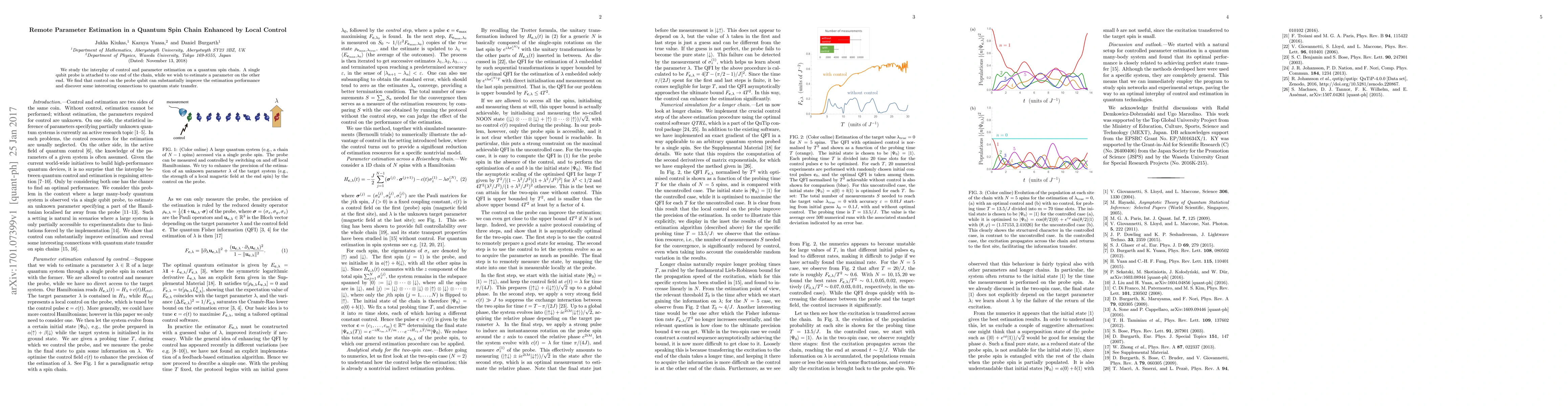 We study the interplay of control and parameter estimation on a quantum spin chain. A single qubit probe is attached to one end of the chain, while we wish to estimate a parameter on the other end. We find that control on the probe qubit can substantially improve the estimation performance and discover some interesting connections to quantum state transfer.