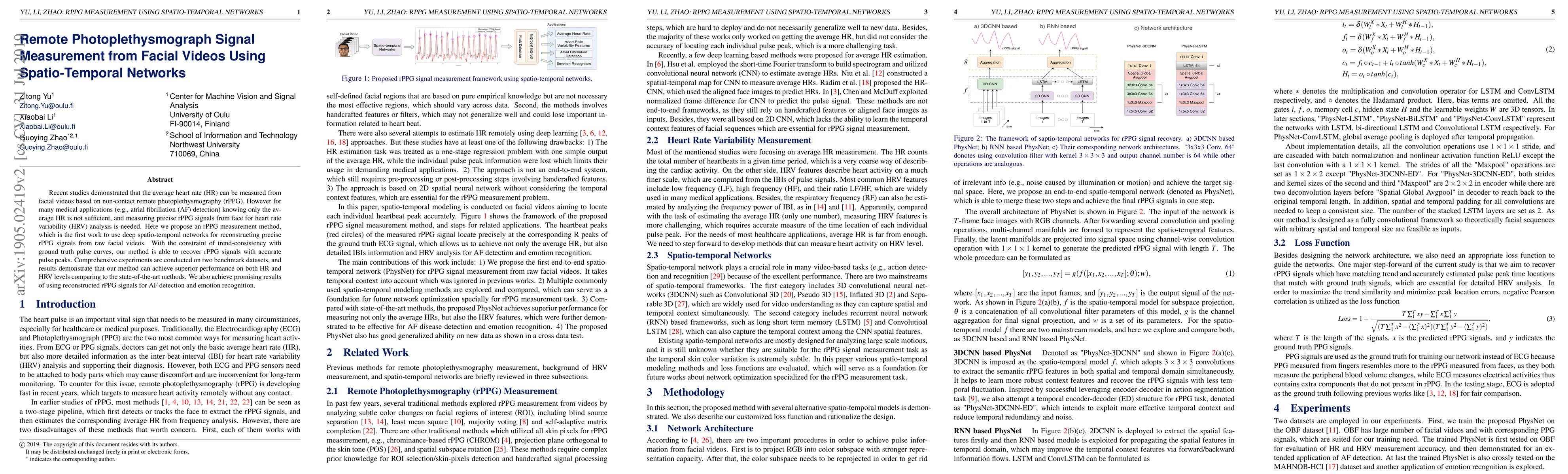 This paper proposes a novel method using deep spatio-temporal networks to reconstruct precise remote photoplethysmography (rPPG) signals from facial videos, achieving superior performance in heart rate and heart rate variability analysis compared to existing methods. The method also shows promising results for atrial fibrillation detection and emotion recognition.