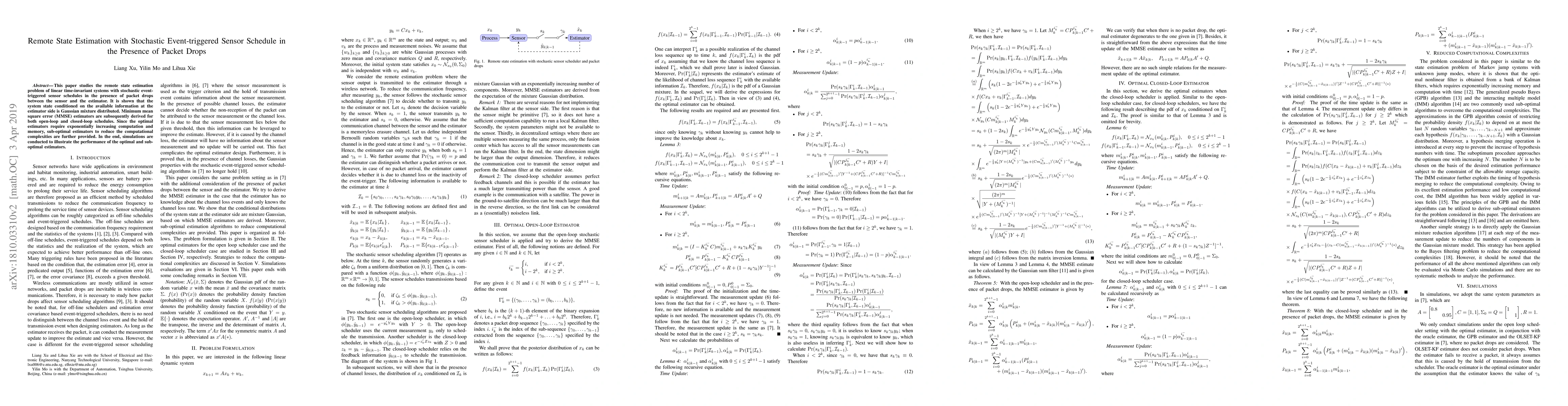 This paper addresses remote state estimation for linear time-invariant systems using stochastic event-triggered sensor schedules, considering packet drops. It proposes Gaussian mixture distributed state estimation and derives MMSE estimators for both open-loop and closed-loop schedules, supplemented by sub-optimal solutions to reduce computational complexity, validated through simulations.