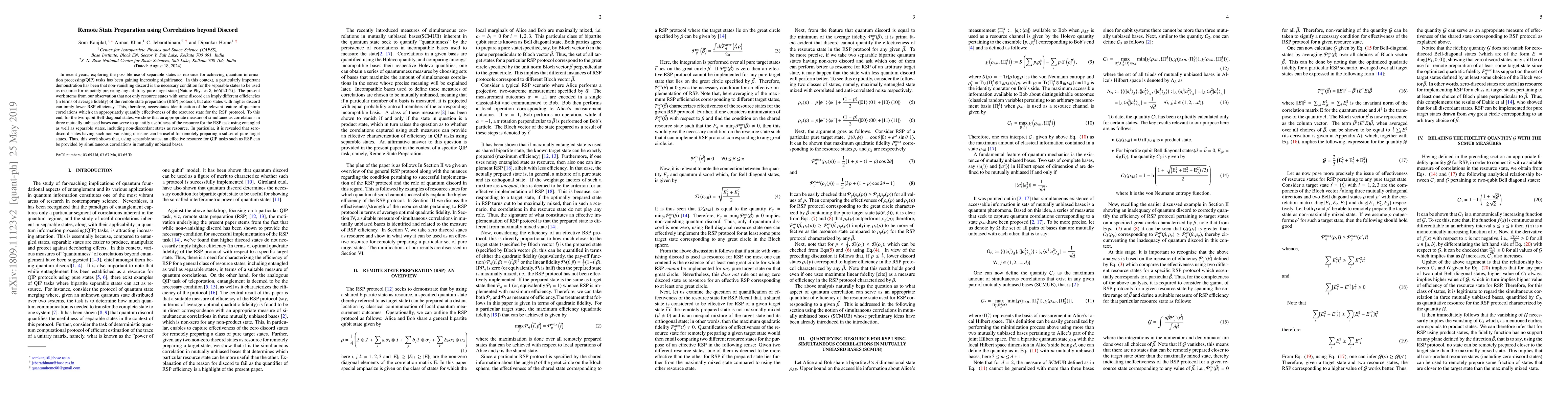 This paper explores the use of separable states for quantum information processing, specifically remote state preparation, and identifies that simultaneous correlations in three mutually unbiased bases can better quantify the effectiveness of resource states than discord. It demonstrates that zero-discord states can still be useful for preparing certain target states when these correlations are non-vanishing.