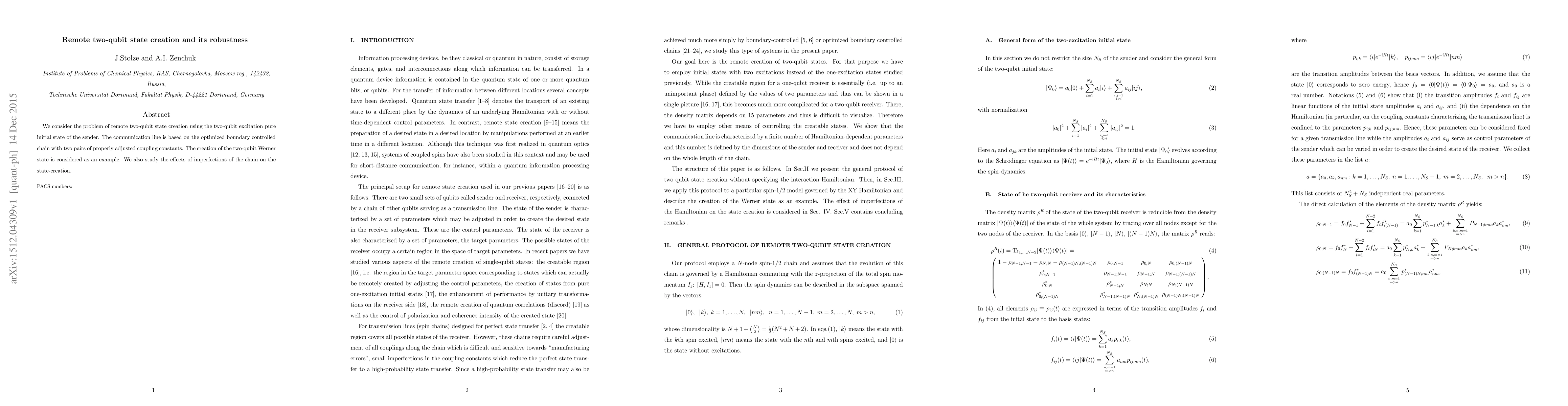 Researchers explore the creation of remote two-qubit states using a specific quantum channel, finding that imperfections in the chain can affect state creation.