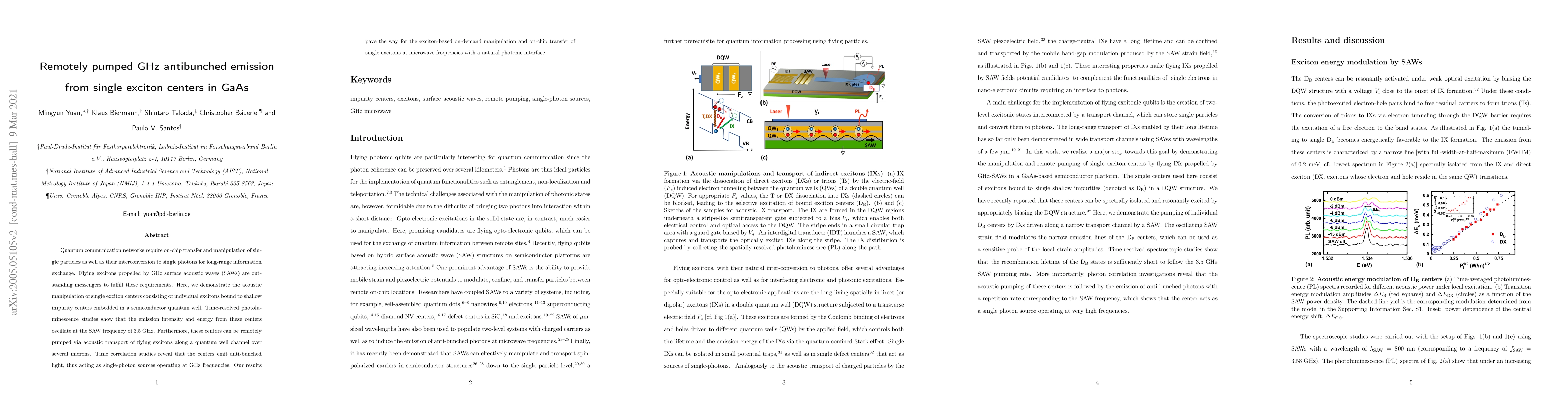 Researchers demonstrate the remote manipulation of single exciton centers in GaAs using GHz surface acoustic waves, enabling on-demand transfer and emission of single photons at microwave frequencies.