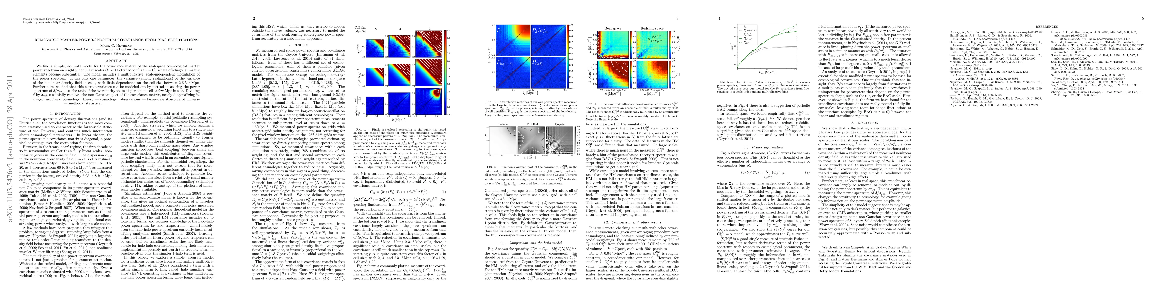 We find a simple, accurate model for the covariance matrix of the real-space cosmological matter power spectrum on slightly nonlinear scales (k~0.1-0.8 h/Mpc at z=0), where off-diagonal matrix elements become substantial. The model includes a multiplicative, scale-independent modulation of the power spectrum. It has only one parameter, the variance (among realizations) of the variance of the nonlinear density field in cells, with little dependence on the cell size between 2-8 Mpc/h. Furthermore, we find that this extra covariance can be modeled out by instead measuring the power spectrum of (delta/sigma_cell), i.e. the ratio of the overdensity to its dispersion in cells a few Mpc in size. Dividing delta by sigma_cell essentially removes the non-Gaussian part of the covariance matrix, nearly diagonalizing it.