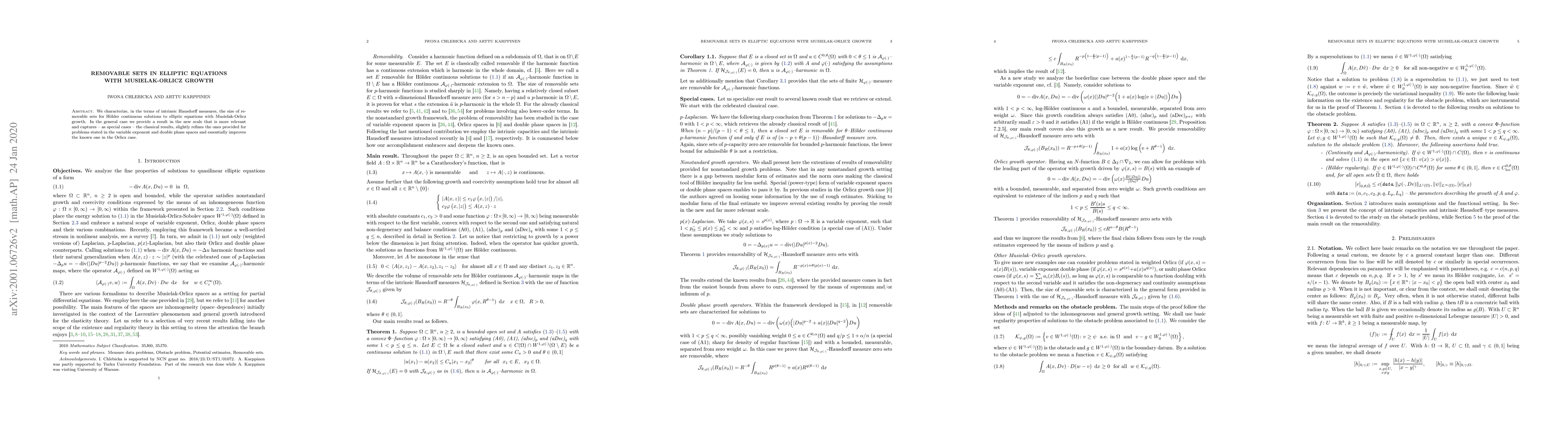 This paper characterizes the size of removable sets for Hölder continuous solutions to elliptic equations with Musielak-Orlicz growth using intrinsic Hausdorff measures. It provides a refined measure that generalizes classical results and improves upon existing findings in the Orlicz case.