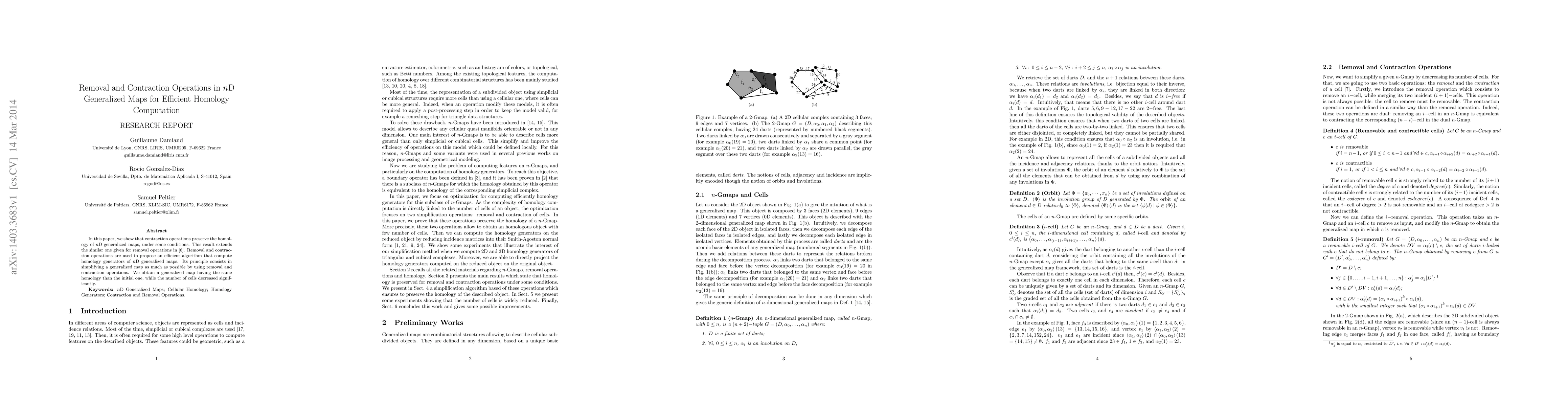 In this paper, we show that contraction operations preserve the homology of $n$D generalized maps, under some conditions. Removal and contraction operations are used to propose an efficient algorithm that compute homology generators of $n$D generalized maps. Its principle consists in simplifying a generalized map as much as possible by using removal and contraction operations. We obtain a generalized map having the same homology than the initial one, while the number of cells decreased significantly. Keywords: $n$D Generalized Maps; Cellular Homology; Homology Generators; Contraction and Removal Operations.