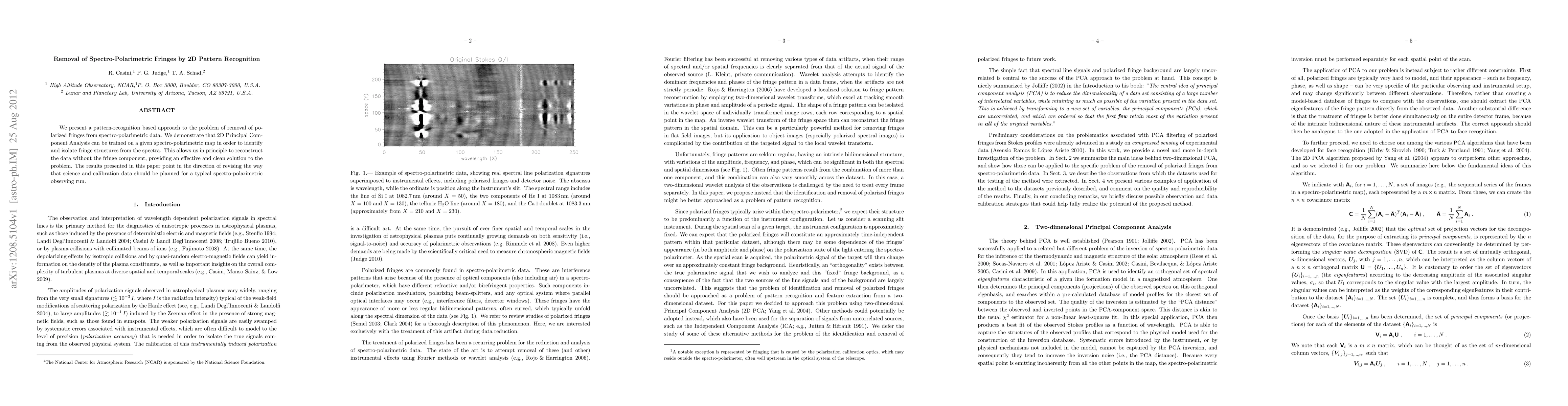 This paper proposes a 2D pattern recognition method using 2D Principal Component Analysis to remove polarized fringes from spectro-polarimetric data, enabling cleaner data reconstruction. The approach suggests a revision in planning for spectro-polarimetric observing runs to enhance data quality.