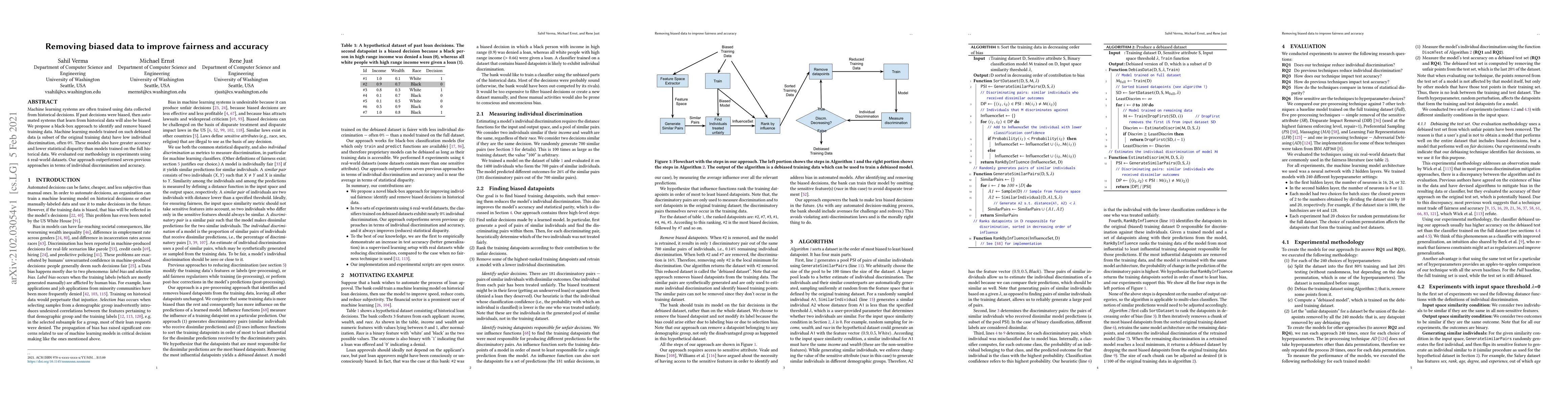 Researchers developed a method to remove biased data from machine learning models, resulting in lower individual discrimination and greater accuracy. Their approach outperformed seven previous methods in real-world datasets.