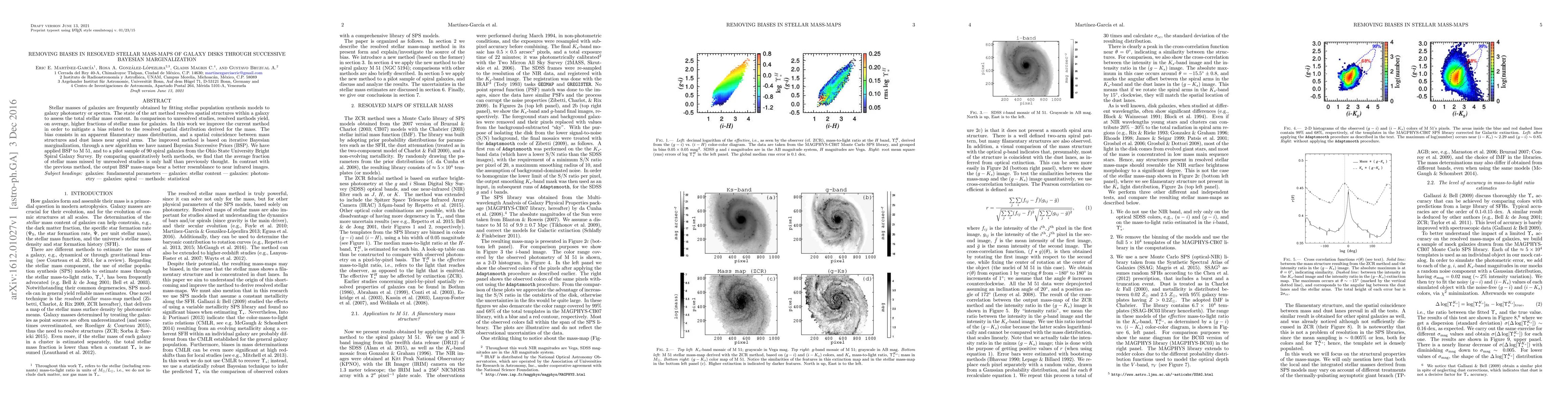 This paper introduces a new method called Bayesian Successive Priors (BSP) to mitigate biases in resolved stellar mass-maps of galaxy disks, showing that it reduces the apparent filamentary mass distribution and better aligns mass structures with near infrared images. The method was tested on M 51 and a sample of 90 spiral galaxies, revealing that resolved methods now estimate only half the previously thought fraction of stellar mass missed by unresolved studies.