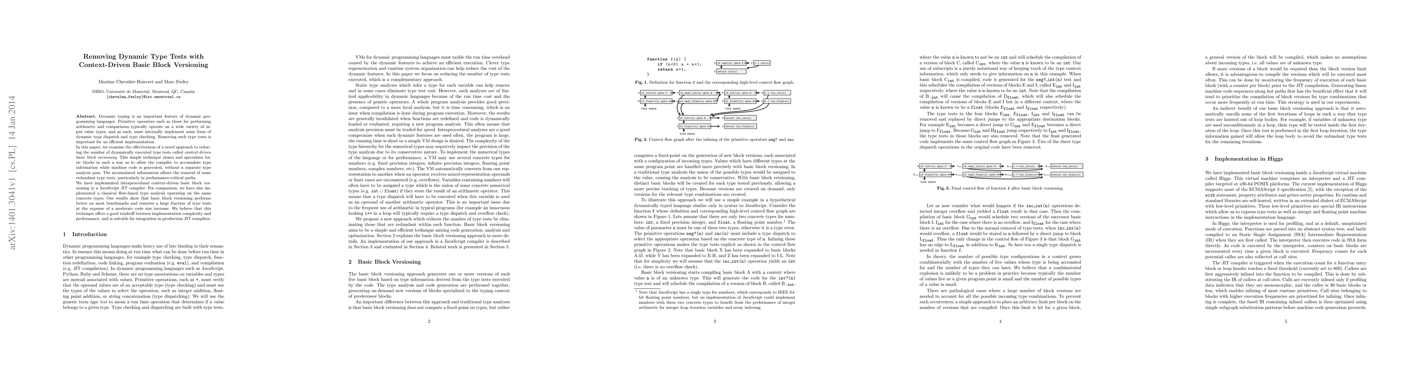 Dynamic typing is an important feature of dynamic programming languages. Primitive operators such as those for performing arithmetic and comparisons typically operate on a wide variety of in put value types, and as such, must internally implement some form of dynamic type dispatch and type checking. Removing such type tests is important for an efficient implementation. In this paper, we examine the effectiveness of a novel approach to reducing the number of dynamically executed type tests called context-driven basic block versioning. This simple technique clones and specializes basic blocks in such a way as to allow the compiler to accumulate type information while machine code is generated, without a separate type analysis pass. The accumulated information allows the removal of some redundant type tests, particularly in performance-critical paths. We have implemented intraprocedural context-driven basic block versioning in a JavaScript JIT compiler. For comparison, we have also implemented a classical flow-based type analysis operating on the same concrete types. Our results show that basic block versioning performs better on most benchmarks and removes a large fraction of type tests at the expense of a moderate code size increase. We believe that this technique offers a good tradeoff between implementation complexity and performance, and is suitable for integration in production JIT compilers.