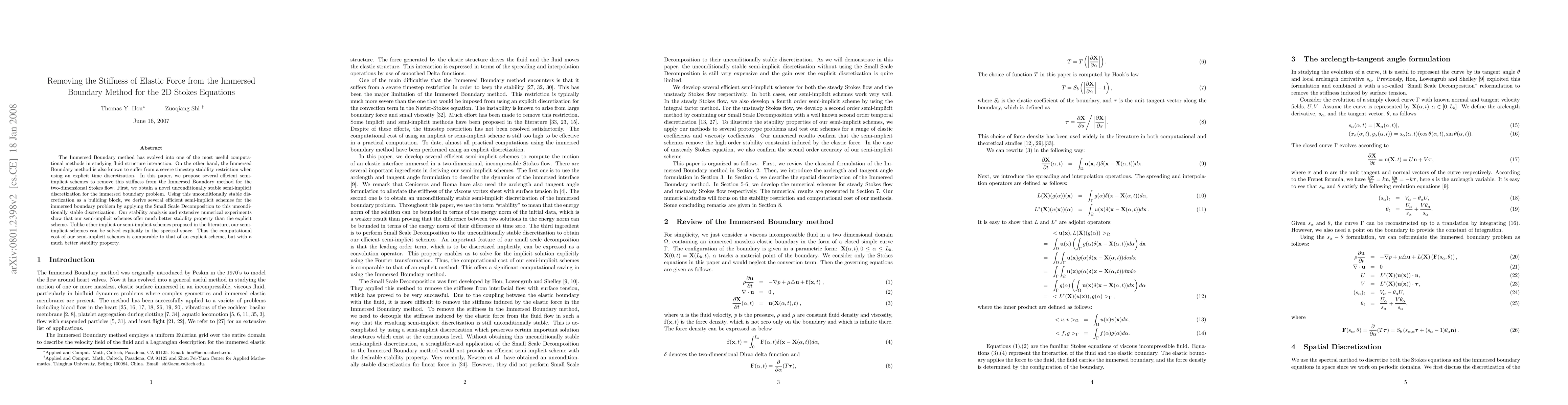 This paper proposes semi-implicit schemes to enhance the stability of the Immersed Boundary method for 2D Stokes equations, overcoming the timestep restriction of explicit methods. The developed schemes, derived from an unconditionally stable discretization, offer improved stability while maintaining computational efficiency comparable to explicit methods.