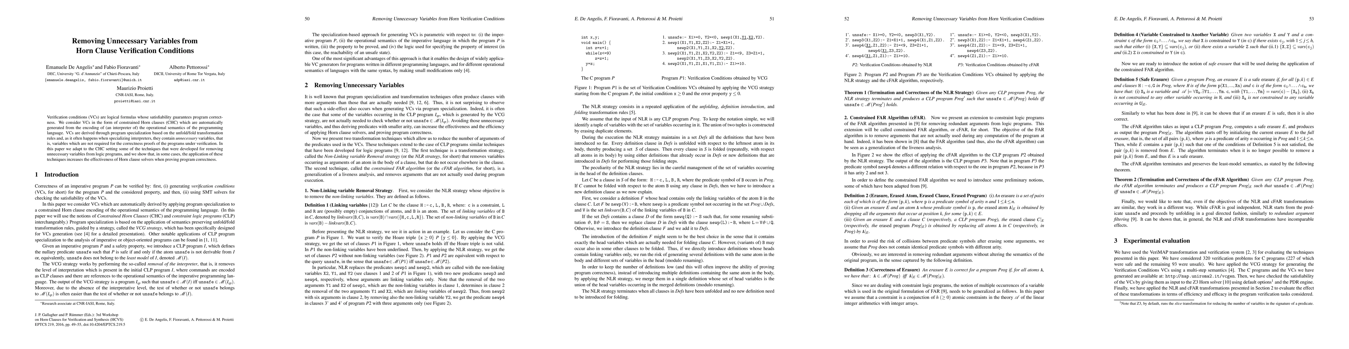 This research introduces new approaches to removing unnecessary variables from Horn clauses, which can significantly impact the performance of verification tools.