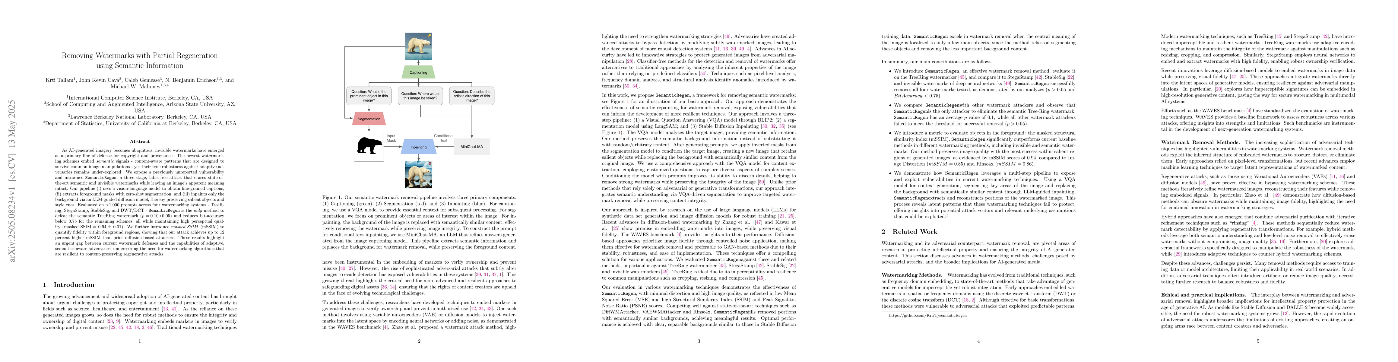 This research highlights a gap between current watermark defenses and adaptive, semantics-aware adversaries, emphasizing the need for resilient watermarking algorithms against content-preserving regenerative attacks.
