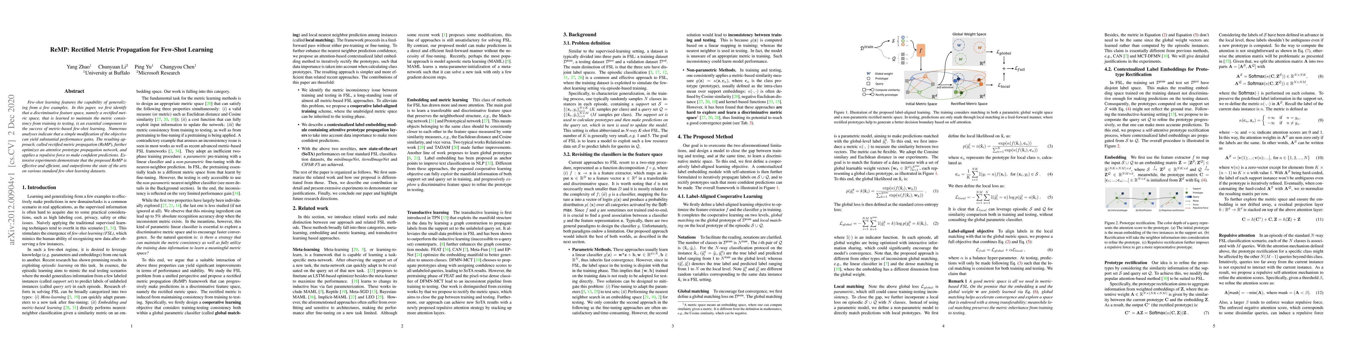 The paper introduces rectified metric propagation (ReMP), a method that enhances few-shot learning by creating a discriminative rectified metric space to maintain metric consistency. ReMP optimizes a prototype propagation network and uses a repulsive force for confident predictions, outperforming existing methods on standard datasets.
