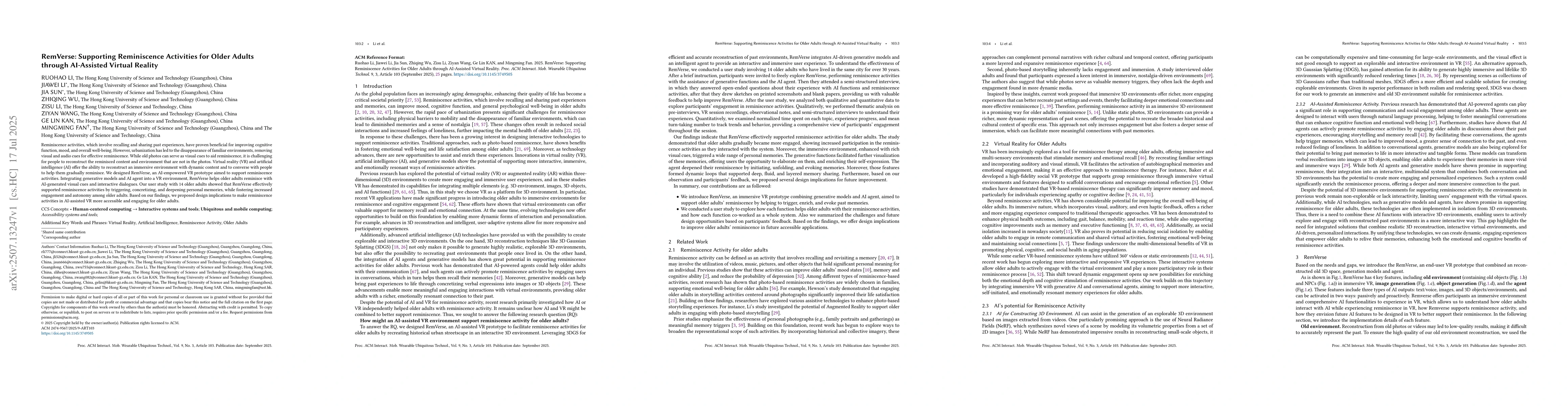 RemVerse represents a technical contribution by integrating generative models, AI agents, and VR to create an immersive, explorable environment rich in cues that evoke personalized memories, thereby facilitating self-expression and deeper memory recall.